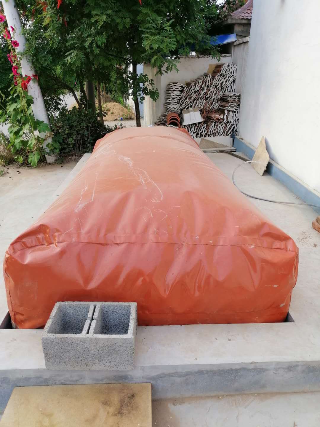 軟體可折疊沼氣池,是一種新型沼氣設備。主要包括:軟體可折疊沼氣發酵袋、沼氣儲氣袋、沼氣升壓泵、脫硫器、分水器、沼氣輸送管及相關管件。設備的主體是軟體可折疊沼氣發酵袋,是用高強度塑性材料(雙面PVC夾網布或優質PVC抗拉膜)經高頻熱合制成,設有出氣孔、進、出料口。沼氣池壓力較低,對防滲漏要求不高。要選用低壓灶具,或在儲氣袋上加壓沙袋等重物,或使用升壓泵,以增加輸氣壓力。